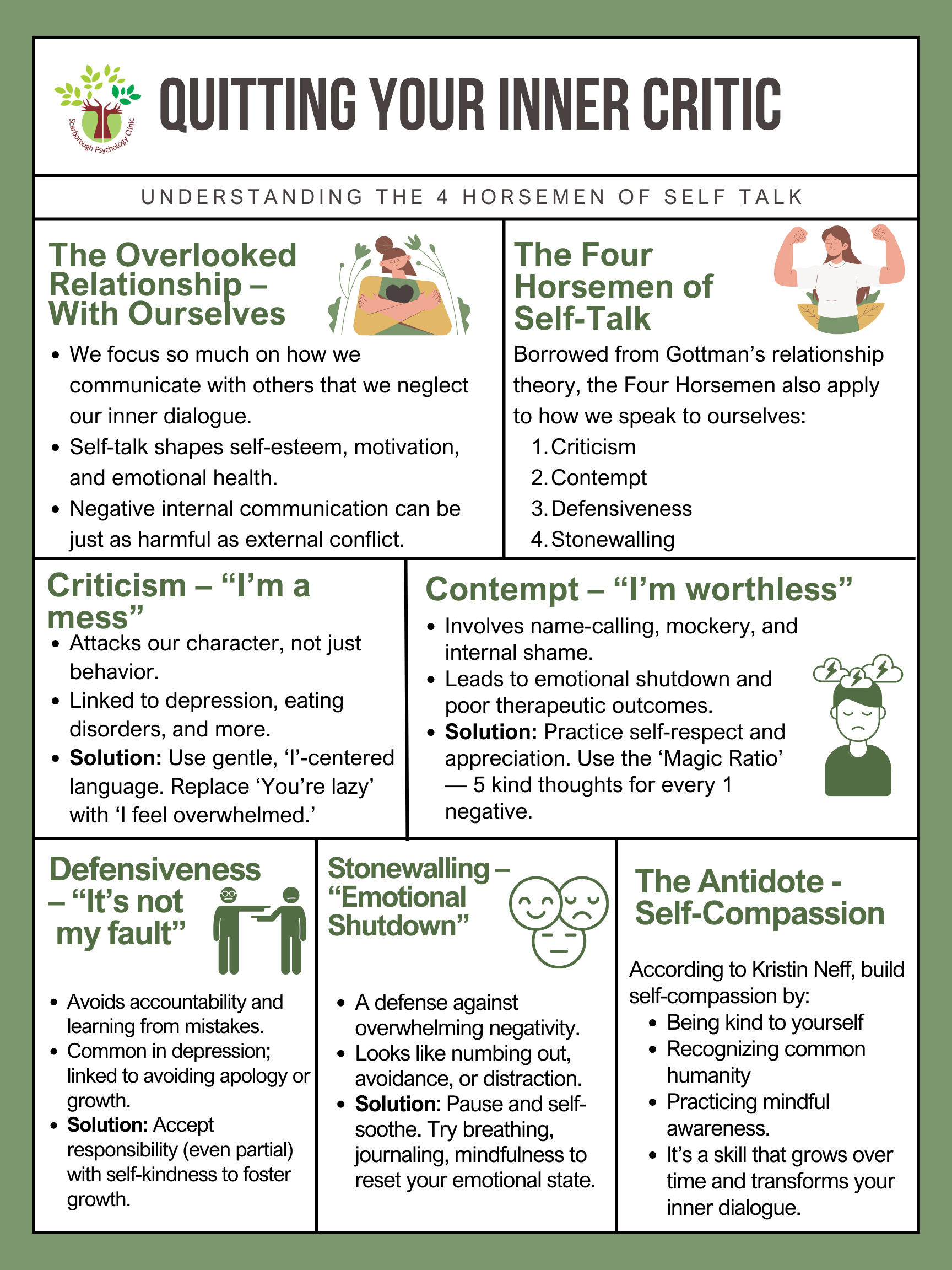 While the Four Horsemen are typically used to analyze communication between partners, they can also show up in communication with ourselves.
